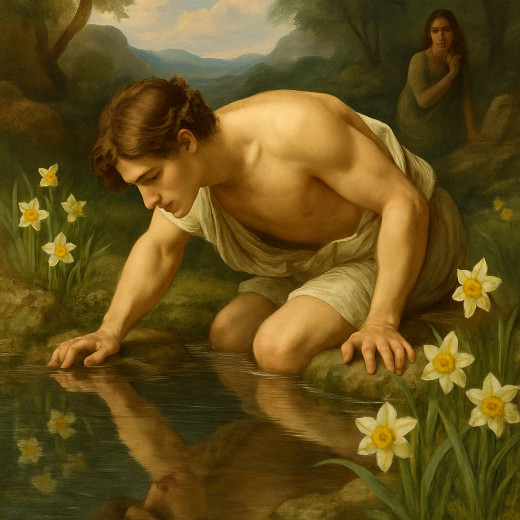 Palavras-chave: narciso espelho, mitologia grega, vaidade, reflexo, flor narciso, eco ninfa, amor próprio, narcisismo